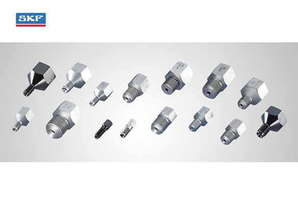 SKF提供各种不同螺纹和尺寸的螺纹接头。 它们作为适配头将不同尺寸的螺孔与管道和软管连接
